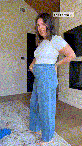 Our shape Authentic 360 Barrel Leg Jeans are made with premium, 4-way stretch denim and feature our signature 360-degree panel for tummy and waist shaping—plus back smoothing to reduce rolling and folding.